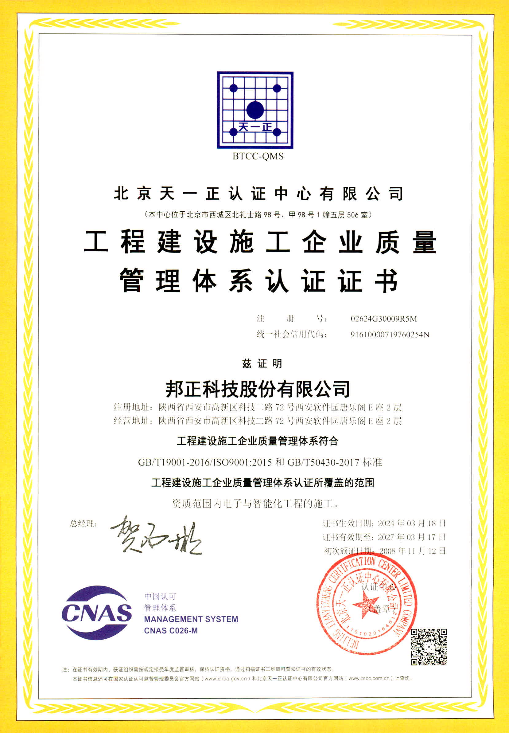 邦正科技拥有“建筑智能化系统设计专项甲级”、“建筑智能化工程专业承包一级”、国家信息系统集成、机电安装、安防工程、人防工程等十余项最高级别权威认证等。